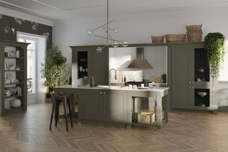 Que diriez-vous d’apporter une touche de dynamisme à votre cuisine en choisissant le vert olive ? à la fois apaisante et terreuse, cette couleur est quasi neutre et fait partie des tendances actuelles. Selon les principes du feng shui, le vert est lié à la croissante et stimule l’imagination.